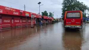 दमक, २१ साउन । अविरल वर्षाले बुधबार विहान जलमग्न दमकको बसपार्क । बर्षातको पानी निकास नहुदाँ वर्षा हुनासाथ बसपार्क क्षेत्र डुवान हुदैआएको छ ।